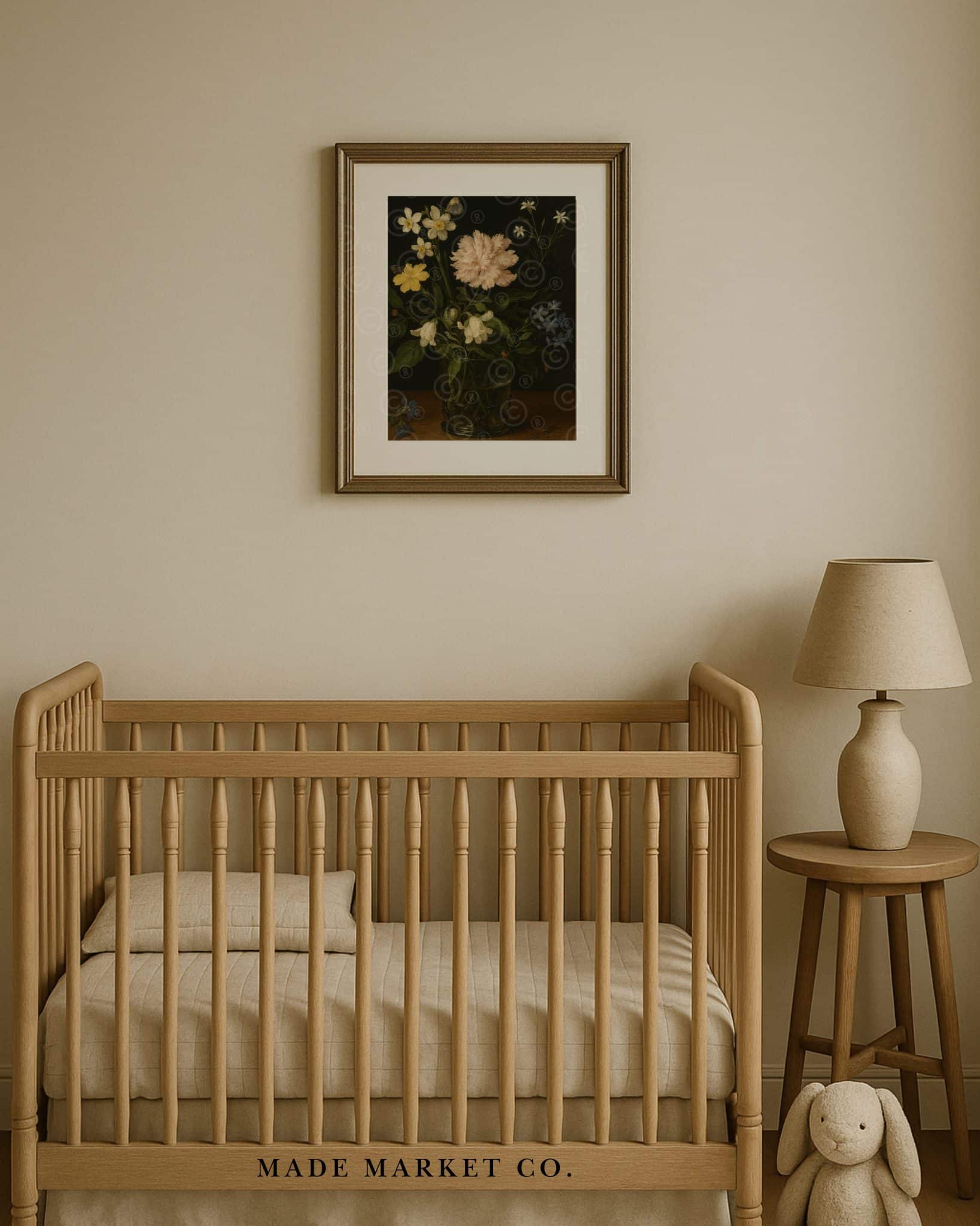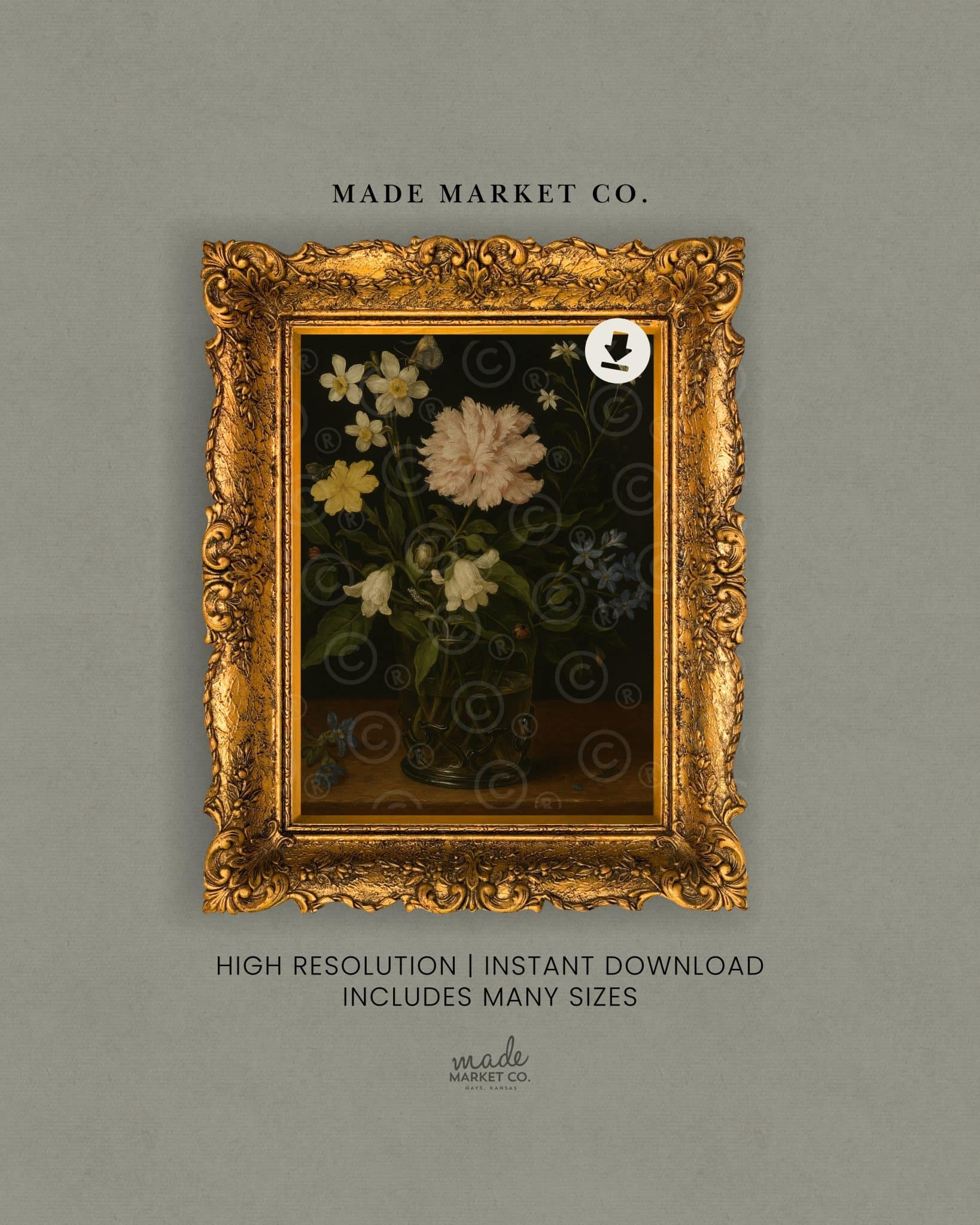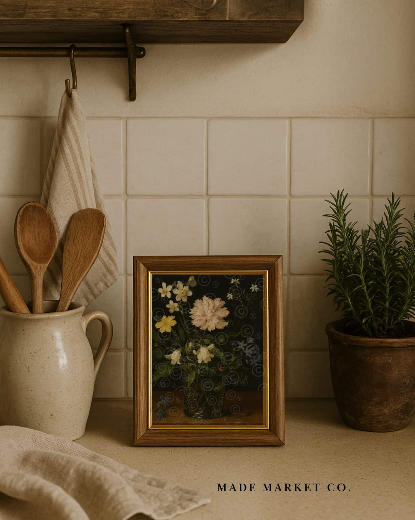 Your purchase includes five printable sizes—3×3, 5×5, 4×6, 5×7, and 8×10—so you can trim and frame it however you like. Whether you’re styling a small nook or layering into a curated display, this vintage floral print brings elegance, texture, and story to any space.