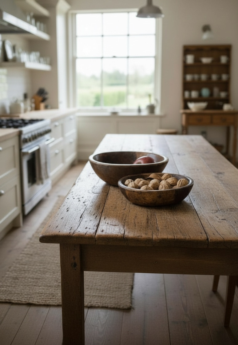 Its generous size is perfect for mixing bread dough, serving a family-style meal, or grounding a table with a sculptural centerpiece. No matter how you use it, this found dough bowl adds warmth and collected character to the everyday. Knots, markings, and imperfections tell the story—each bowl carries a piece of the past into your home.