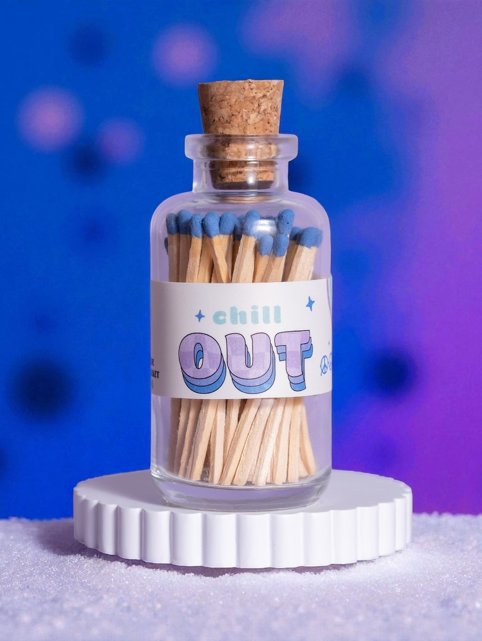 Embrace a relaxed and nostalgic vibe with this Mini Apothecary Vintage Chill Out Matches. These matches feature cool blue tips that evoke a sense of calm and serenity. Retro graphics, including peace sign glasses and groovy line designs, capture the essence of a laid-back, vintage era. Practical and stylish, this match bottle includes a striker for easy use. Chill Out Matches, perfect for lighting candles, setting a tranquil ambiance, or adding a touch of retro flair to your decor. This mini match bottle is a thoughtful and unique gift for anyone who loves to relax and unwind in style.